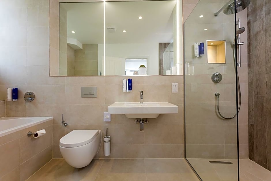 This suite comes with 1 living room, 2 separate bedrooms and 1 bathroom with a bath and free toiletries. The suite has carpeted floors, a seating area with a flat-screen TV, a wardrobe, an electric kettle, as well as a sofa. The unit has 4 beds.